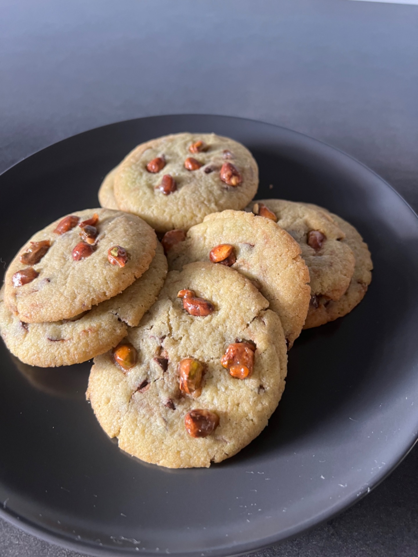 Cette recette a pour moi été assez simple, du fait que ça soit une simple recette de cookie avec quelques améliorations, qui font cependant une grosse déférence dans le goût et la texture du cookie. La caramélisation a été l’étape où j’avais le plus d’appréhension, car il faut être attentif et faire chaque étape de la bonne façon pour avoir de belles pistaches caramélisées. Au final, tout s’est super bien passé et le goût était incroyable.