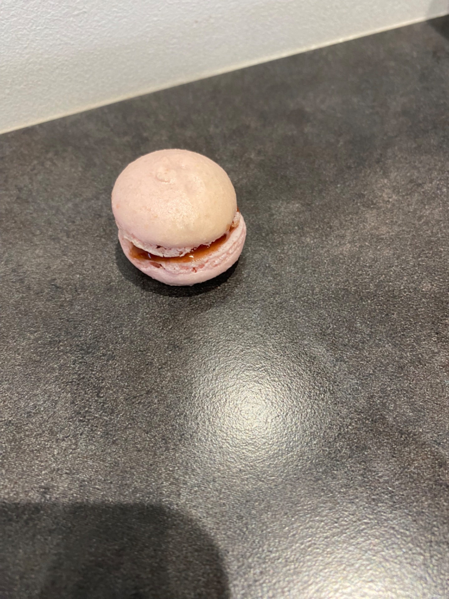 La recette des macarons a été beaucoup plus compliqué que toutes mes autres recettes, mais aussi plus longue à réaliser. Cependant, cela m’a appris à cuisiner un nouveau désert, même si ce n’est pas celui que je ferais tous les week-ends, car c’est selon moins un peu trop sucré mis tout de même bon. Durant la préparation de ma coque, je suis sûre de m’être trompée dans le choix de ma poudre d’amende, ce qui a fait que même si j’ai suivi les étapes comme elle était indiquée, j’ai toujours eu de nombreux grumeaux sur mes coques et ce qui s’est malheureusement vu même après la cuisson. Sinon tout s’est bien passé.