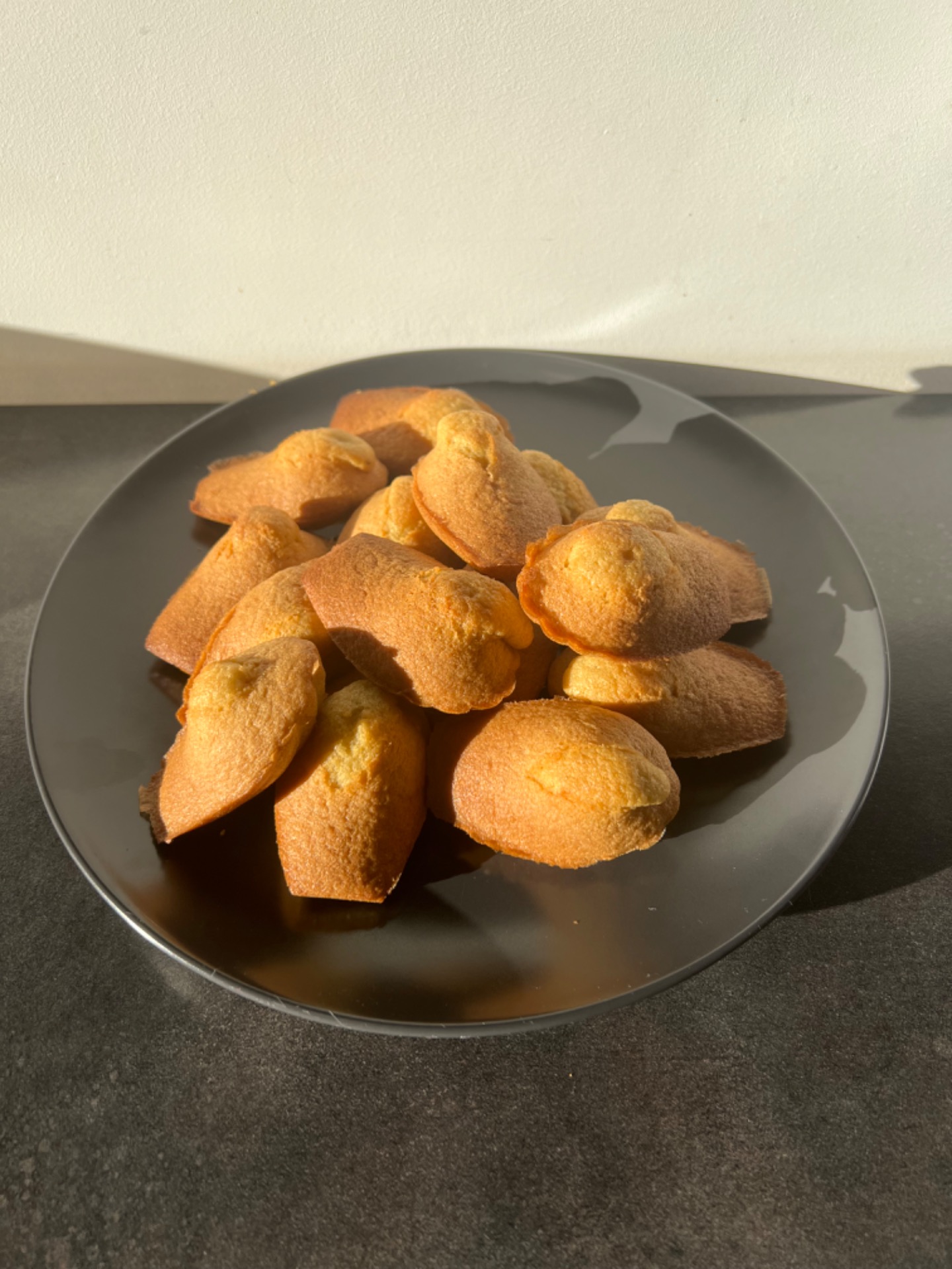 J’ai tout particulièrement voulu cuisiner des madeleines, car je trouve que ce sont des gourmandises appréciées par de nombreuses personnes, et aussi que ça soit des gâteaux individuels, ce qui est donc plus facile pour donner à chacun.