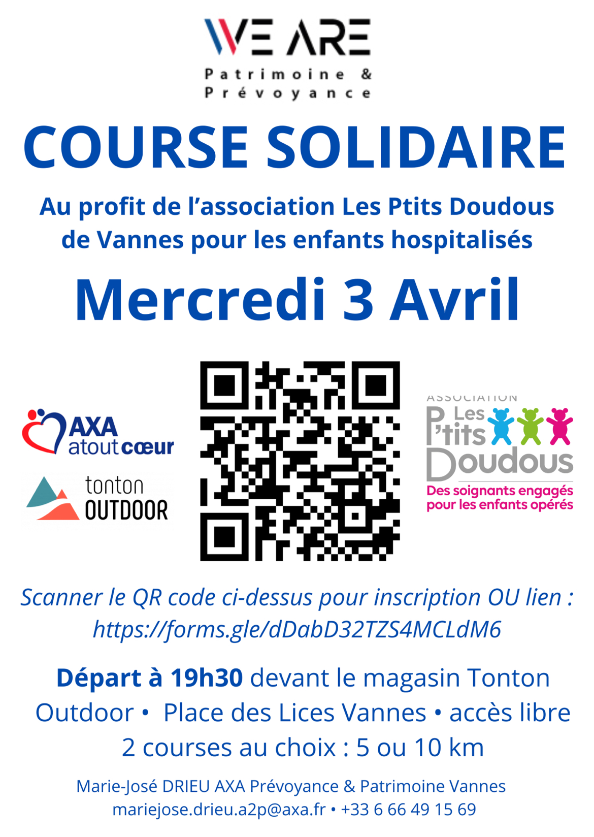 Cette course a eu lieu le mercredi 3 avril à 19h30, nous nous étions donc donnés rendez-vous avant afin de se réunir pour le départ, qui était devant la boutique Tonton Outdoor qui était justement les collaborateurs de cette course, qui devait verser une certaine somme pour chaque kilomètre couru par chacun, au profit de l'association " Les petits doudous ". Nous avions 2 propositions de parcours, un qui faisait 6 kilomètres et l'autre qui faisait 10 kilomètres, nous avons donc formé deux groupes pour que chacun puisse faire le parcours qu'il souhaitait.