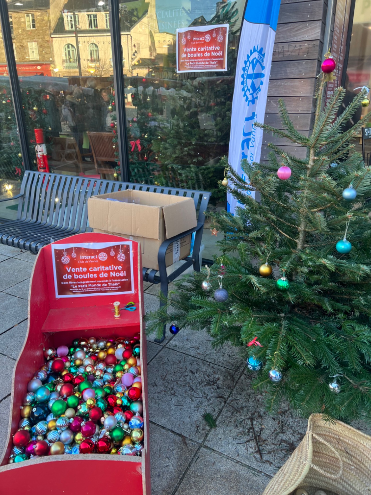 Durant l'une de nos réunions, nous avions décidé tous ensemble de représenter l'association " Le petit Monde de Thaïs", c'est une association qui a été créé par les parents de Thaïs, une jeune fille polyhandicapé, malentendante et malvoyante, afin de pouvoir obtenir de l'aide dans l'achat de nouveaux matériaux essentiel pour le bien-être de Thaïs. Notre action des ventes de boules de Noël allait servir dans l'achat d'un nouveau fauteuil roulant pour Thaïs, car il devenait trop petit et n'était plus adapté à ses besoins. De plus, la jeune fille habitait à Séné, une ville qui se situe dans les alentours de Vannes, donc ce qui rend cette action locale.