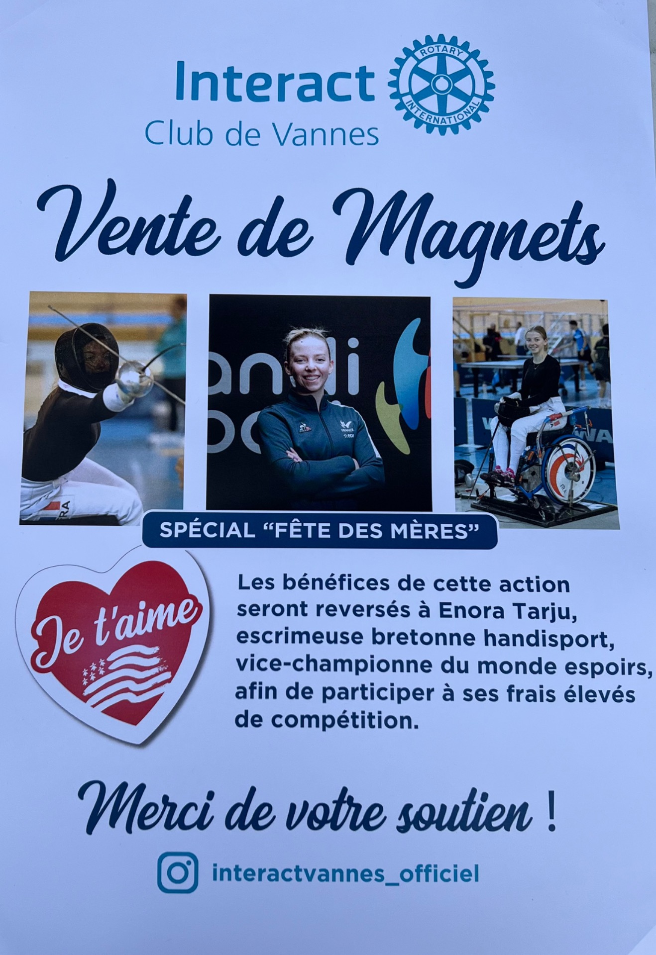 Cette matinée a été un réel succès, du fait que nous ayons eu du monde grâce à notre emplacement qui nous le permettait. Nous avions aussi une bonne organisation en se plaçant à l’entrée et à la sortie pour pouvoir interpeller le plus de passants possible. Ce qui nous a permis de vendre tous nos magnets durant cette matinée et donc de récolter […] afin de soulager Enora et sa famille dans ses frais de déplacement afin qu’elle puisse assister à de nombreuses compétitions.